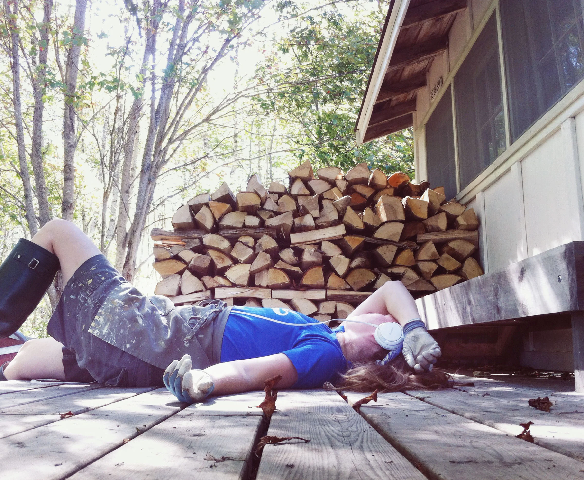 The day before flying to Europe, I was trying frantically to finish stacking two and a half cords of firewood—not a lot by south shore standards, but several days of hard hauling when you're on your own. One stack tucked in in the lee of the shed, another along the outer edge, and the last small bit wrapping around the front. I was bruised and bashed and for days, every time I woke up, I couldn't move until I wiggled every joint like a tin man low on oil.