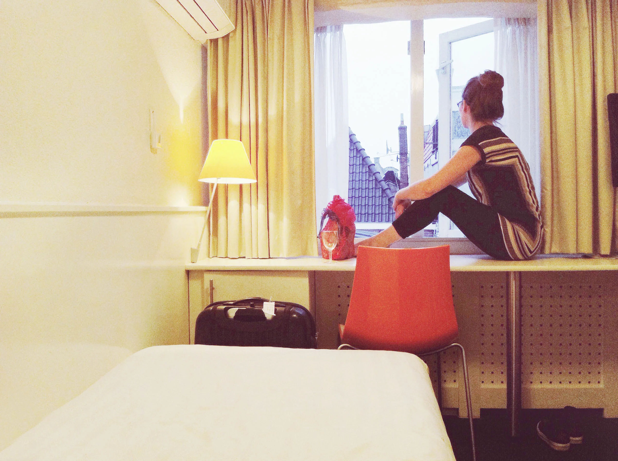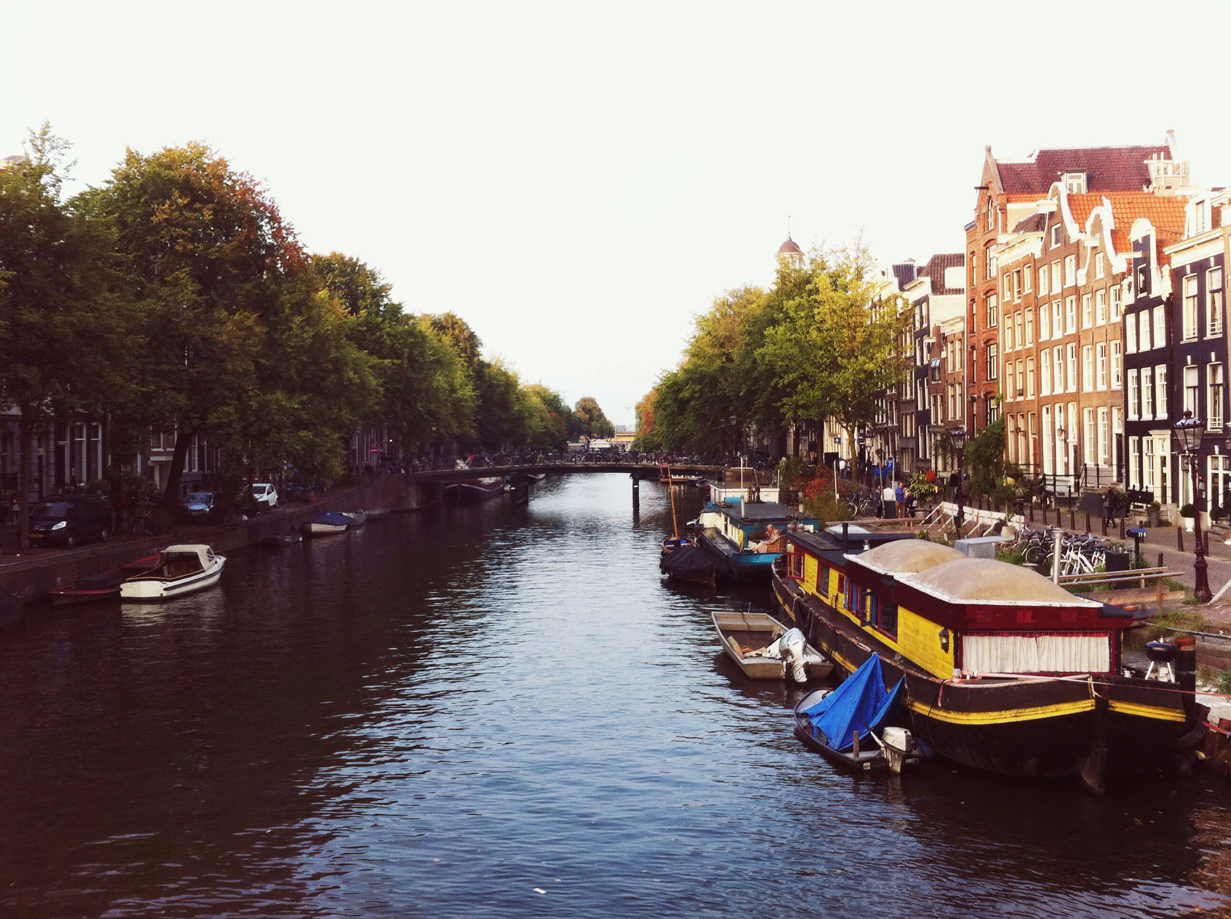 All I wanted was the whirr, the fog in the mornings, cafes and bakeries, corner shops for a bottle of wine and cheese and dark chocolate. I walked the canals, peeking through open doors to stairs like ladders and through four-hundred year old glass. I fell hard into an insatiable love with this city. If I went inside, into any building, I wouldn't be out in it anymore, you know? So I didn't.