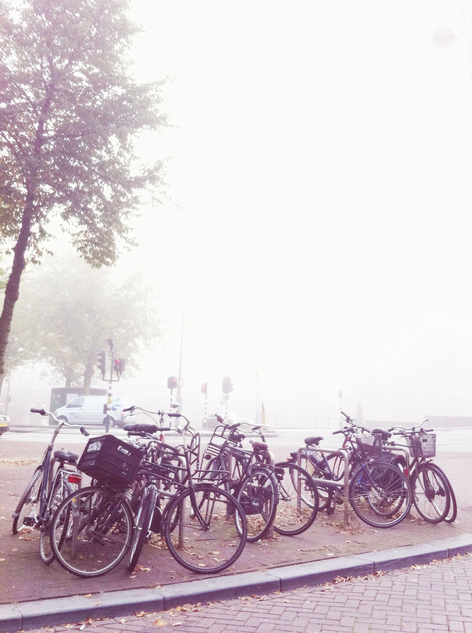 A man in a tweed jacket rode casually, if there’s such a way, down Harlemmerstraat with his arms folded across his chest like he was in an easy chair. A little girl, maybe two years old, with brown skin and blond cockscrews sitting in a handlebar seat with her hands folded in her lap, blinking in the mist. A lady, cycling and humming. A little boy in a wagon, humming.