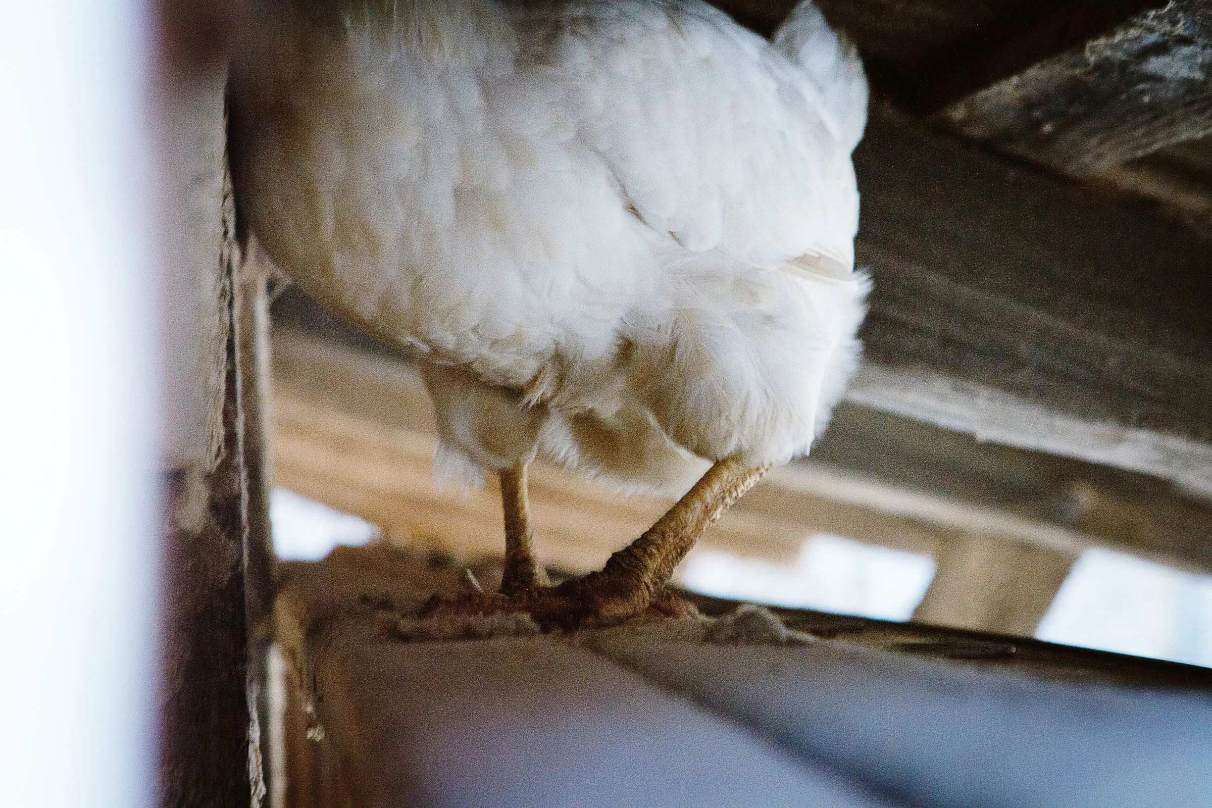 The chickens were beside themselves, shrieking and pecking for space in the rafters of a shed.