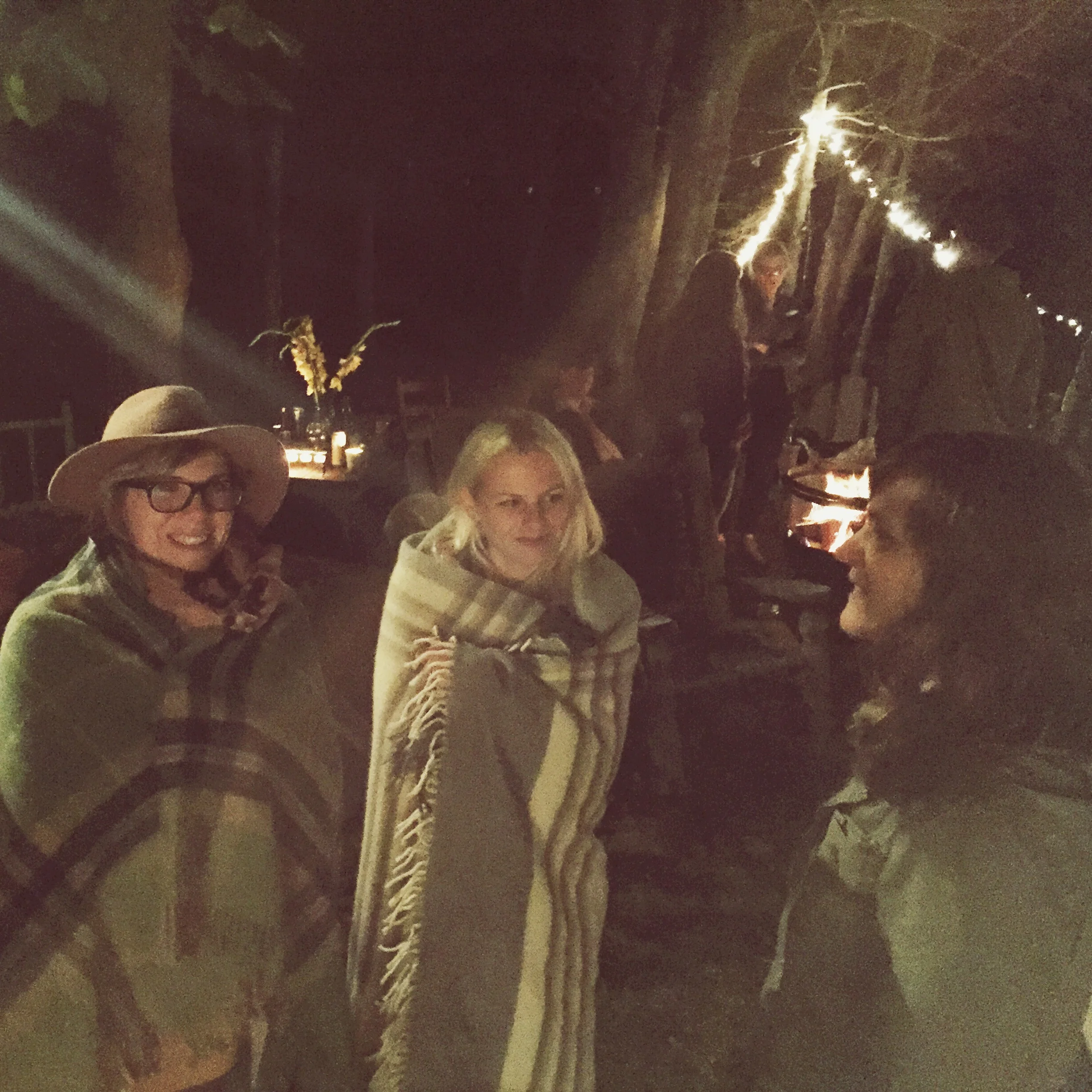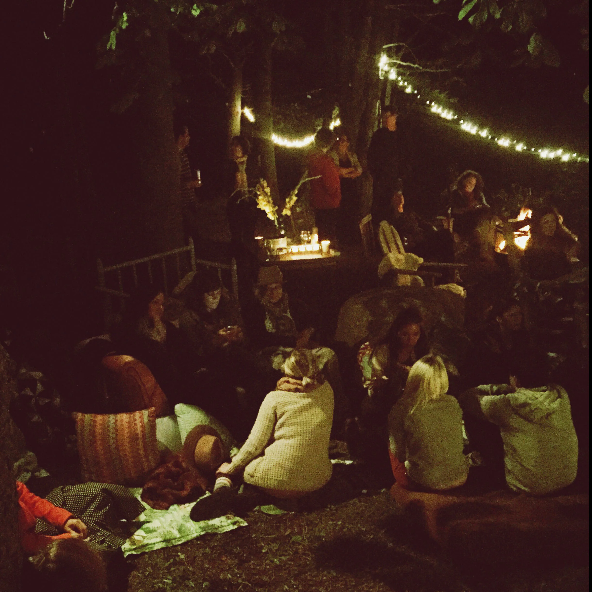 It's the best night ever. It's smokey and torturously beautiful! I cry! I shout! We throw more logs onto the fire and more quilts onto the grass, and everyone gets sloppy and sloshy with arms and legs tangled up together under the tree canopy, and we sing along and pass out mom's shortbread, and more people join us through the yard, picking their way through the dark to find where things are glowing, following the twang of banjos.