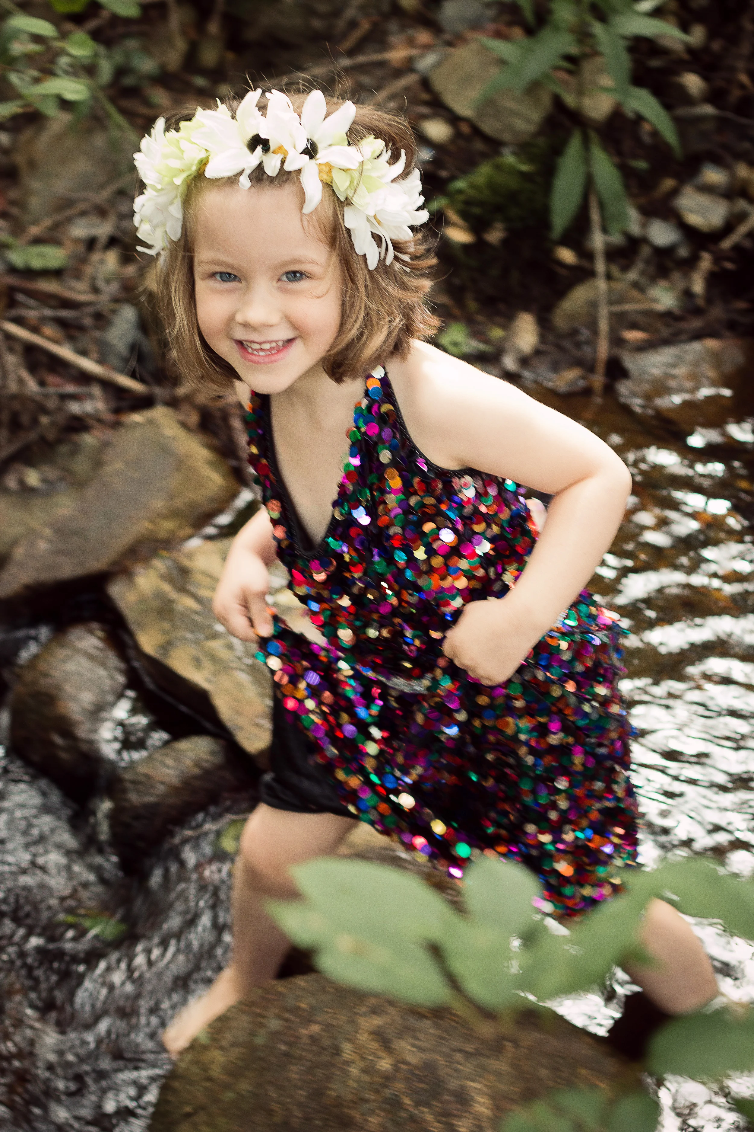 The next morning, everything went outside. Sparkles and feathers and facepaints. Heaps of lenses and reflectors; my mom's cookie tin full of shortbreads; mirrors and dresses and the fainting couch. We turned Skydiggers and Amy Winehouse and Etta James up loud, and it wasn't long before someone got into the creek. The day was a joyful downhill tumble. Shoots in the bathtub! Shoots in the bamboo forest! Clusters of play.