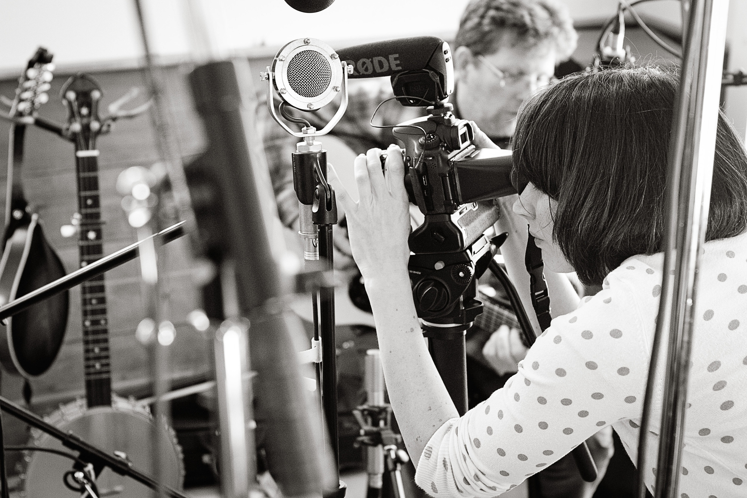 Me and Katy were both there in the cabin, tiptoeing in the middle of heaps of mic cords and extension cords and speaker tripods, swivelling in every direction with our cameras—hers capturing video for her Analog Songs and me capturing stills—but I could hardly see a thing. I was one of the first people to hear the song The Early Days played live, as it was recorded, and what a hopelessly wet face. I tried looking through the lens but made my own fog.