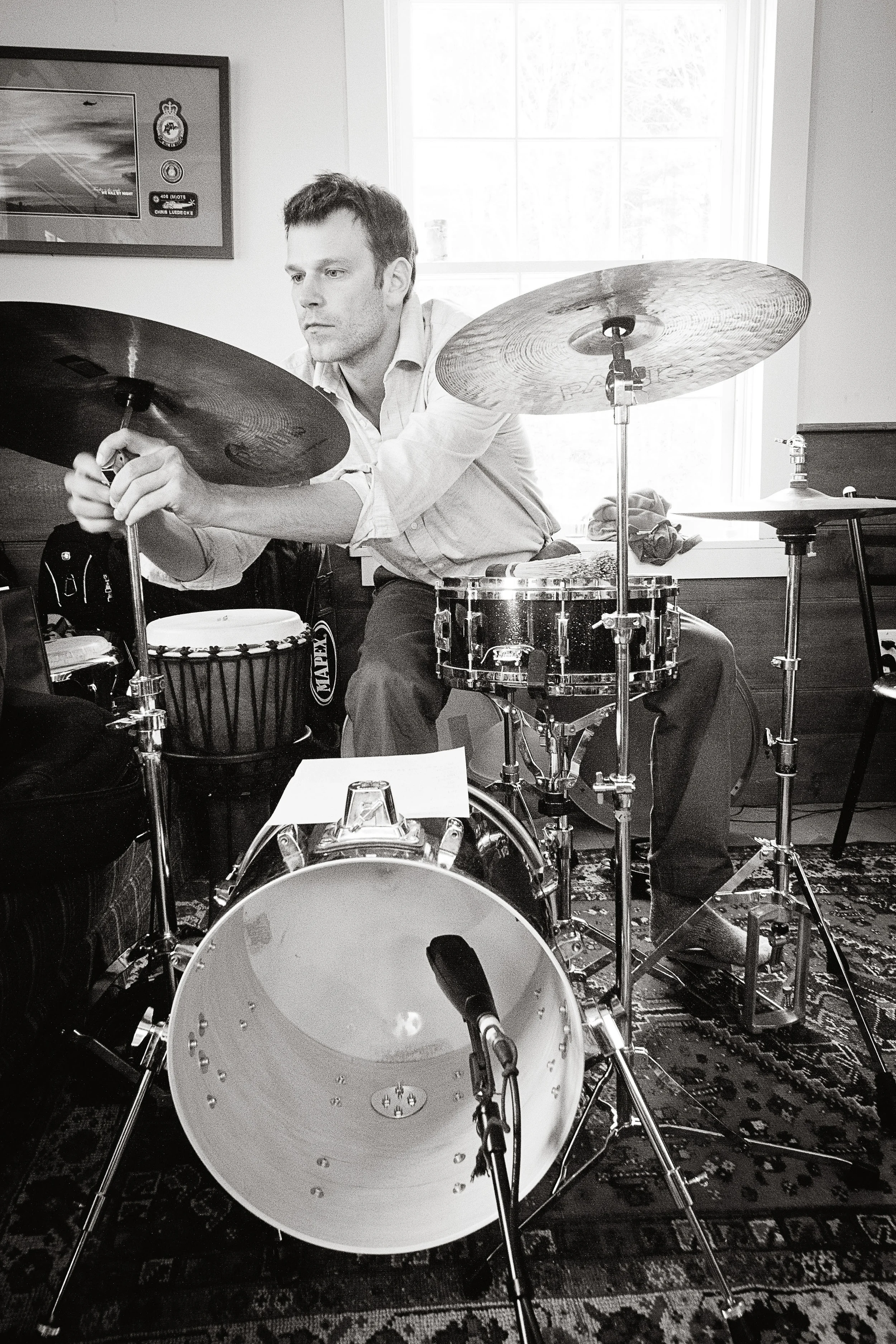 His latest album, Domestic Eccentric, was recorded in the godforsaken armpit of the longest and gnarliest winter any of us can remember. He hired a backhoe to shovel a path through chest-deep snow to his woodland cabin, where everyone tumbled inside with gourd banjos and mandolins and fiddles and drums, and me and my camera, too, to capture a bit of it all.