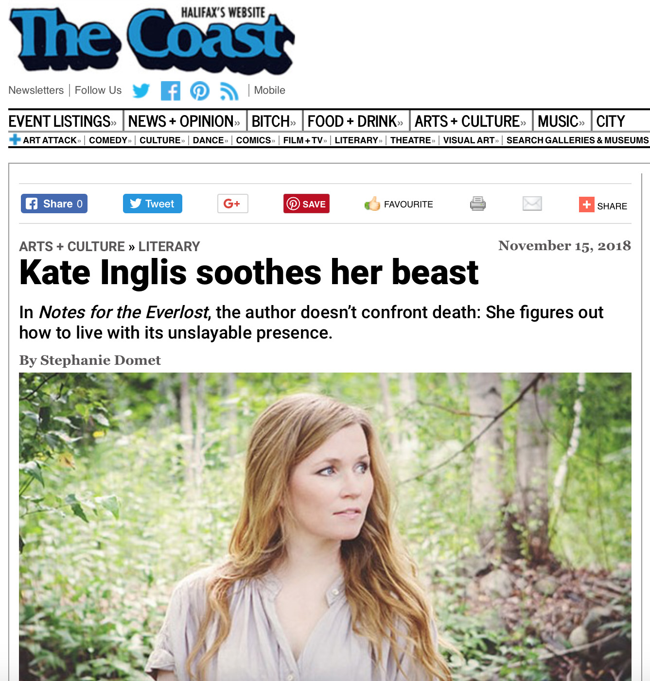 Such a big thank-you The Coast and our city’s much-loved CBC alum and novelist Stephanie Domet for such a beautiful run-up to my author salon in Halifax this Monday night: